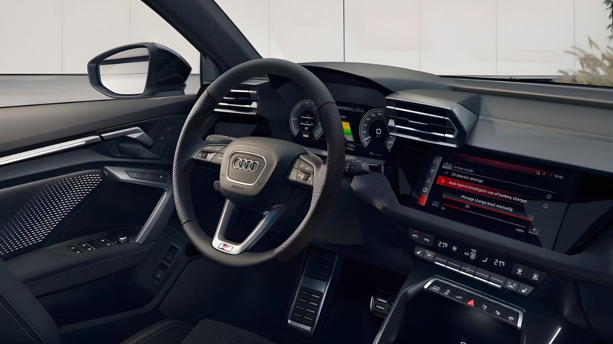 The A3 Sportback TFSI e delivers up to 88 miles of all-electric range, with a TFSI petrol engine for longer journeys.