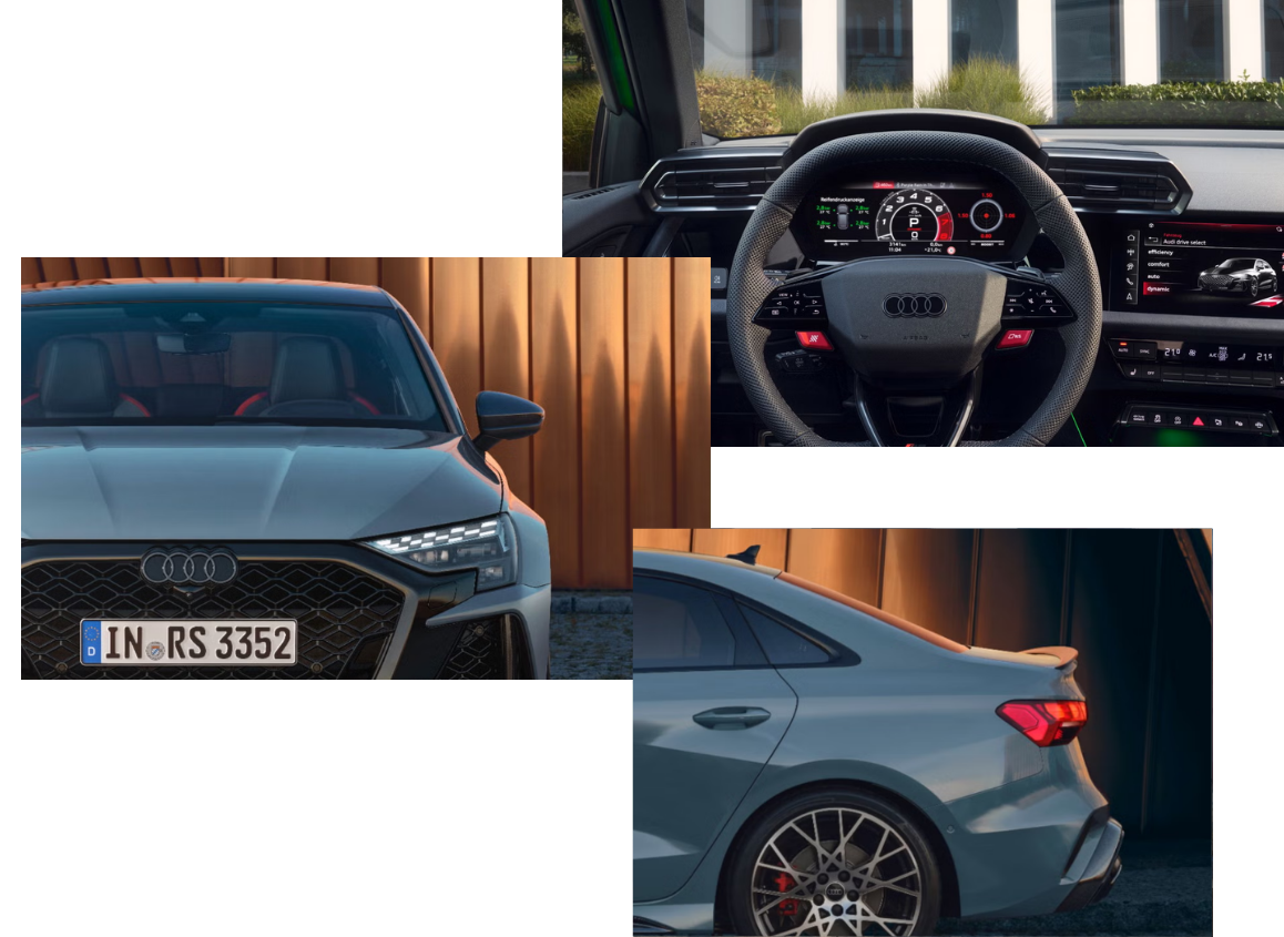 The RS 3 Saloon delivers 400 PS, accelerating from 0 to 62 mph in just 3.8 seconds for powerful, agile performance.