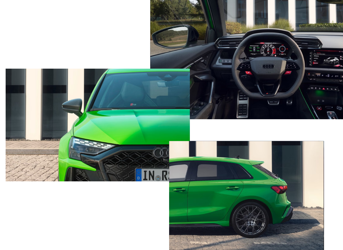 The RS 3 Sportback delivers 400 PS, accelerating from 0 to 62 mph in just 3.8 seconds for truly exhilarating performance.