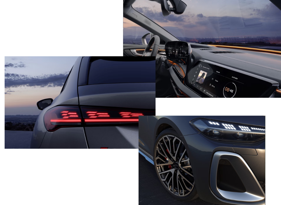 Striking 20-inch Audi Sport alloy wheels enhance its dynamic presence, while premium finishes add a refined edge.