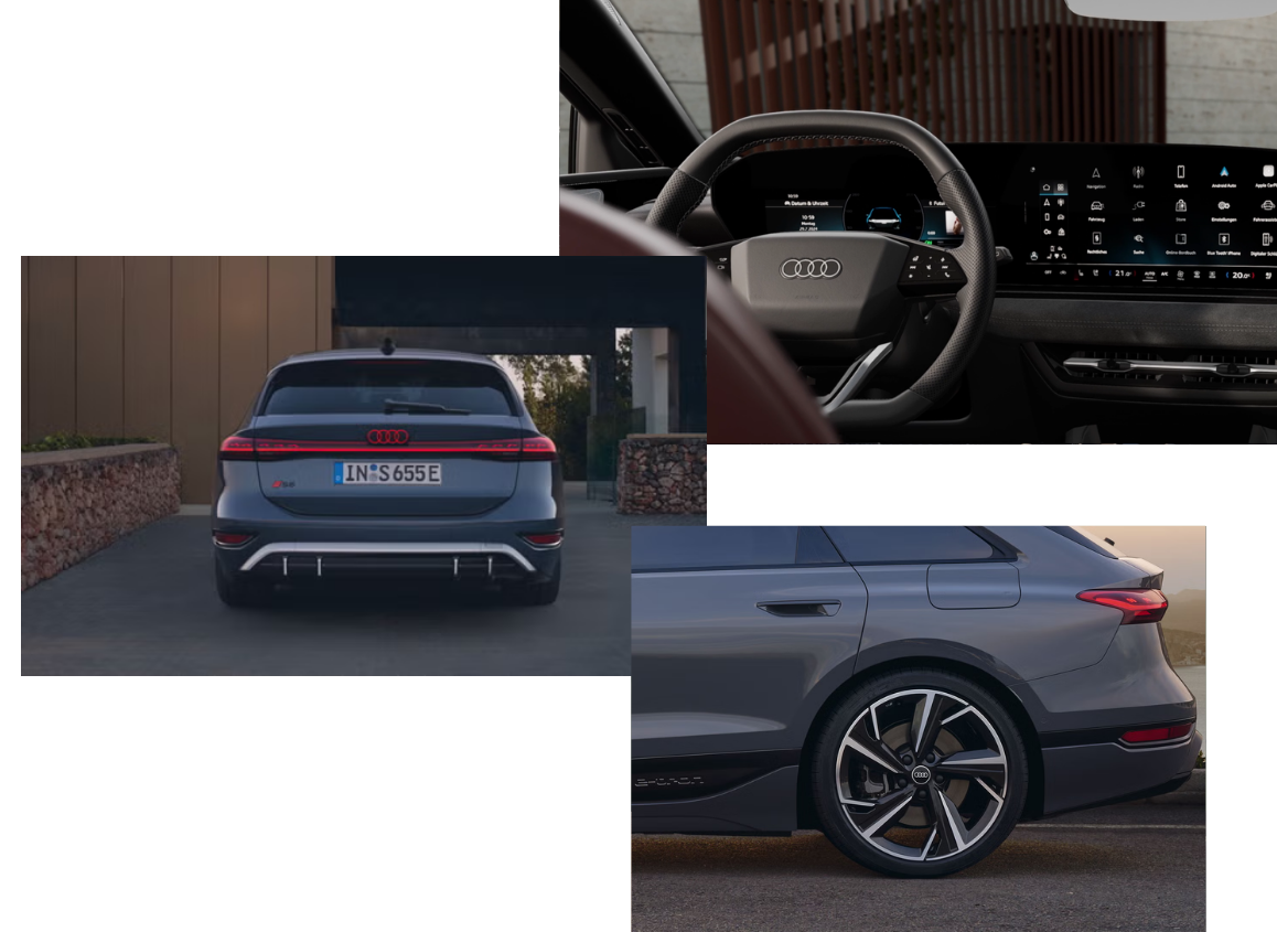 Sporty detailing, including wide wheel arches and sculpted air intakes, gives the S6 Avant e-tron a powerful and confident presence.