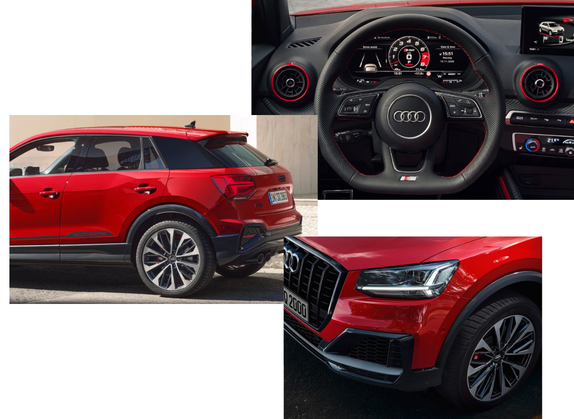 The Audi SQ2 delivers 300 PS from its 2.0-litre TFSI engine, accelerating from 0 to 62 mph in just 4.9 seconds for powerful, responsive performance.