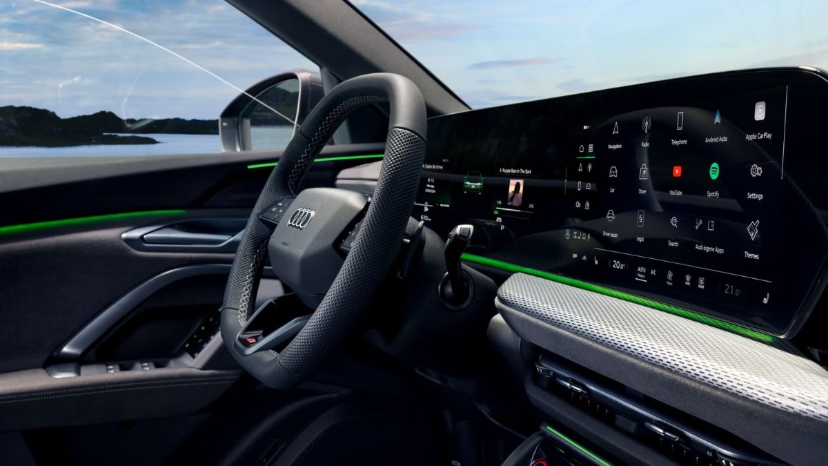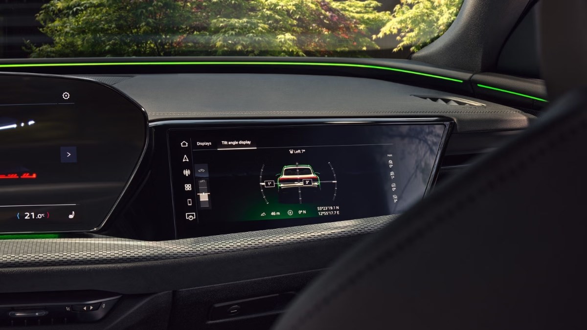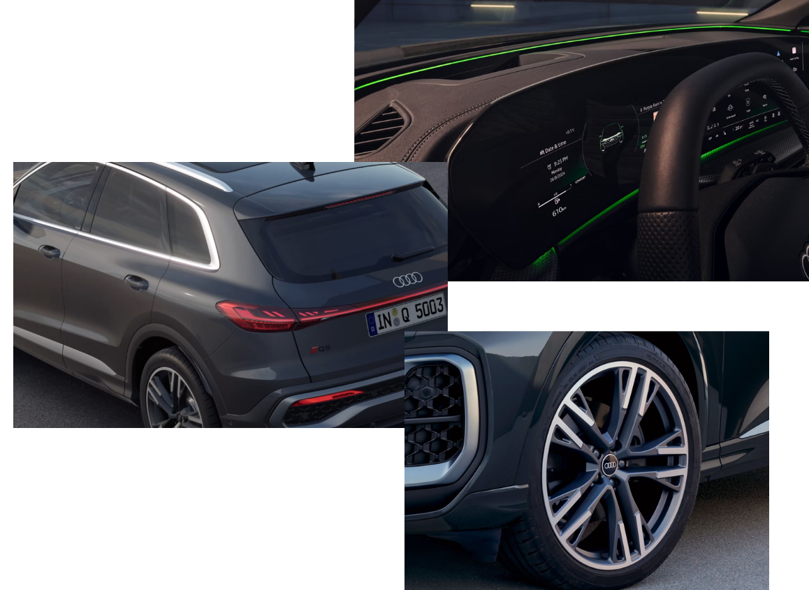 Inside, a panoramic digital display with a curved OLED touchscreen and Audi virtual cockpit creates a modern, intuitive environment, with an additional passenger display available on higher trims.