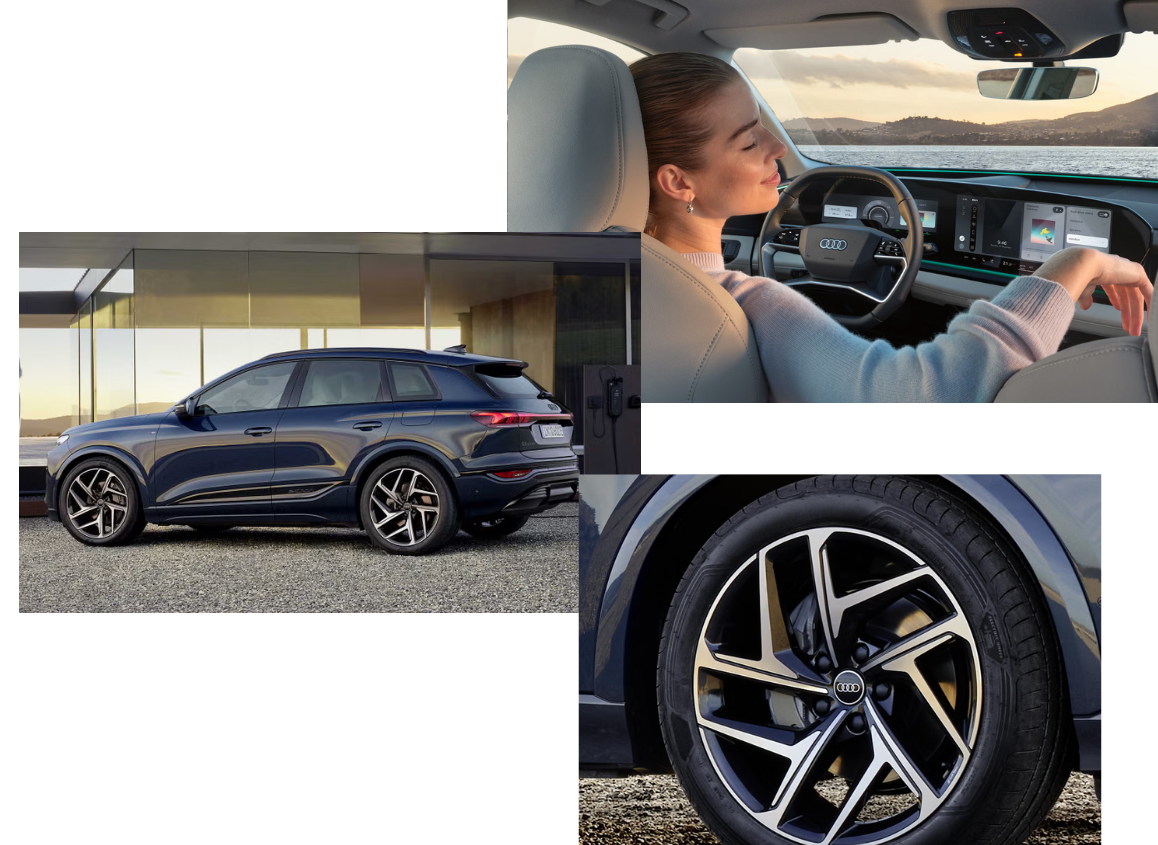 Inside, a curved panoramic OLED display integrates the Audi virtual cockpit and MMI touch display, creating a seamless, driver-focused digital experience, with an additional passenger display available on higher trims.