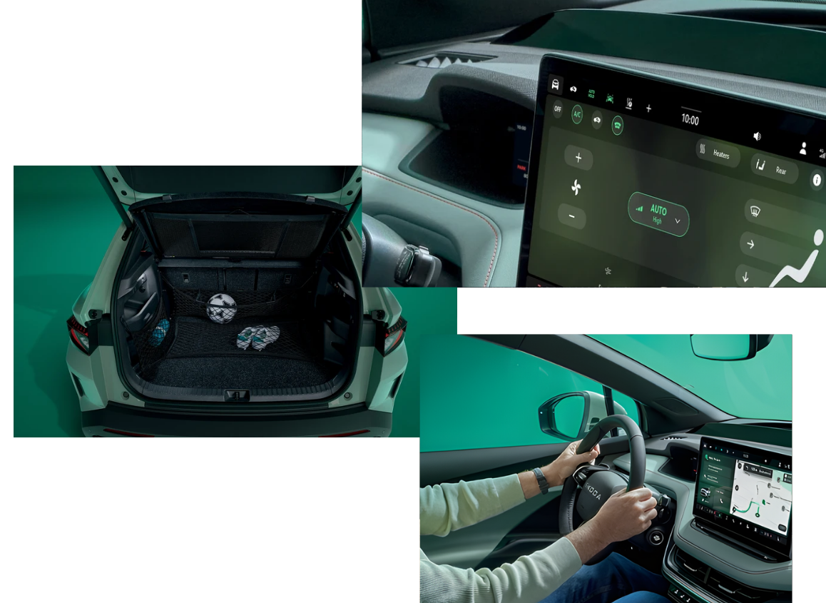 The Škoda Elroq introduces a bold new design direction, built on Škoda’s Modern Solid philosophy that blends simplicity with a rugged, refined character. Clean lines and distinctive detailing give it a confident presence, while sustainable materials, including innovative dark chrome finishes and recycled interior elements, reflect a forward-thinking approach throughout the vehicle.