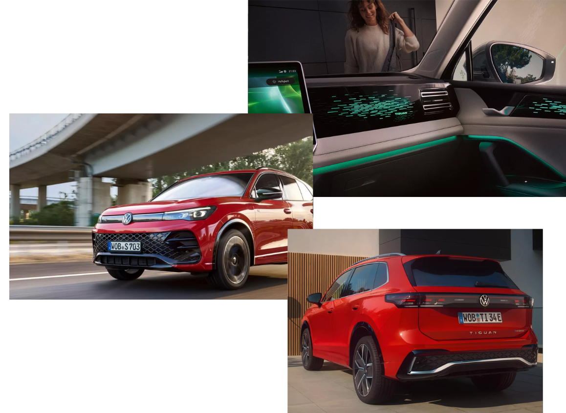 Inside, the Tiguan is designed with comfort and versatility in mind. Generous space allows passengers to relax, while the flexible second row can slide, adjust or fold to suit your needs, whether carrying passengers, sports equipment or luggage. An optional variable luggage compartment floor expands capacity up to 1,650 litres, making it easy to adapt the space for everyday use or longer journeys.
